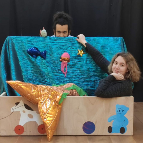 C’est l’histoire de Toi et Moi, au fil de leurs imaginaires. À la fois pirates, sirènes, cuisiniers ou encore aventuriers, ils traversent les émotions, au gré d’accessoires qui sortent des malles de jouets. Contes, comptines, percussions et marionnettes emmèneront les tout-petits à la découverte de la colère, la peur, la tristesse mais aussi la joie et la complicité.